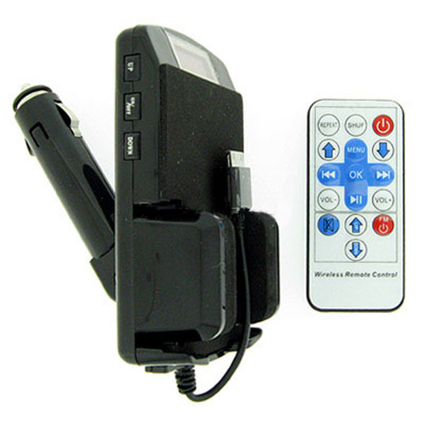 The 7-in-1 Wireless FM Transmitter can then be set to broadcast iPhone or iPod music to any FM frequency from 87.5 to 108.0. Its backlit screen shows which frequency the transmitter is currently broadcasting – and can easily be adjusted via remote control.